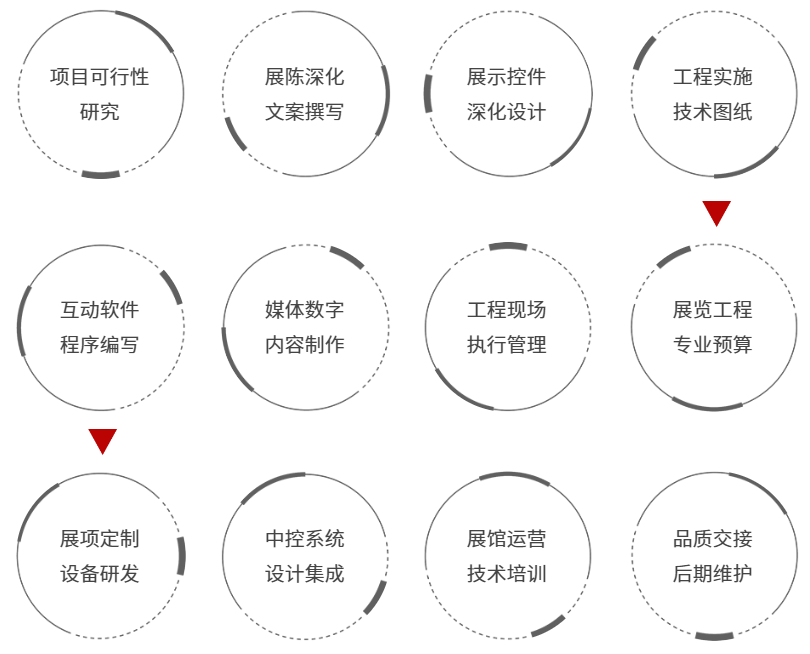 咨询策划、创意设计、数字内容制作、施工安装、售后运维